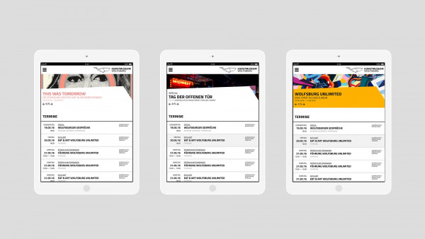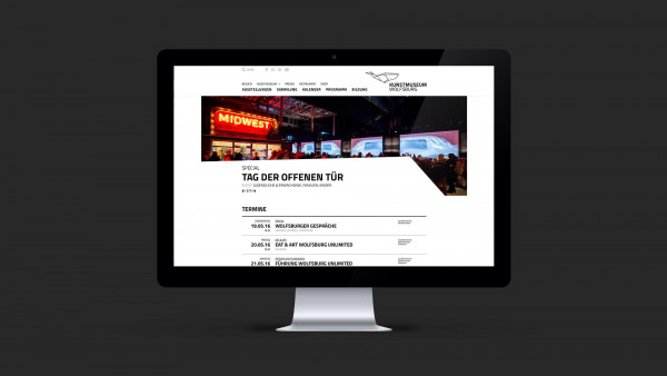 Für das Kunstmuseum Wolfsburg erarbeiteten wir den Relaunch der Marke und betreuen das Museum seitdem im Ausstellungsdesign, Grafikdesign und Digitalen Medien.