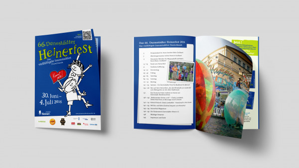 Der grafische Auftritt basiert auf den sympathischen Heiner Figuren von Helmut Lortz kombiniert mit verspielter Typografie und kräftigen Farben die jedes Jahr wechseln.