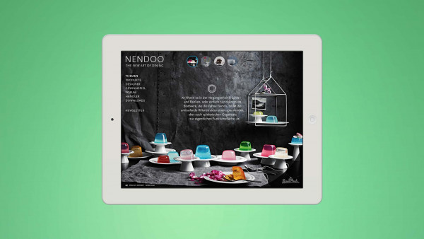 Für die Keramikserie Nendoo wurde eine Micro-Website konzipiert und umgesetzt, die die Multifunktionalität des Designs durch eine vielseitige Gestaltung in Szene setzt. Eine unkonventionelle Seite, die durch Animationen zum Leben erwacht.