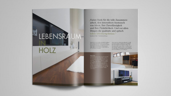 Wir entwickelten für den mittelständischen Schreinereibetrieb aufbauend auf den Claim „Design in Holz“ ein umfassendes Corporate Design.